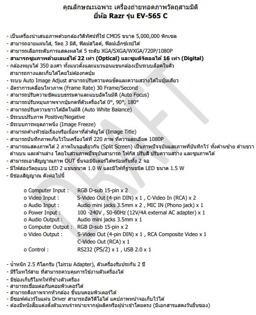 ประเภทสินค้า > อุปกรณ์ห้องเรียอัฉริยะ-ห้องเรียนดิจิตอล > เครื่องฉายภาพ 3 มิติ > VISUALIZER Razr EV-565C