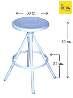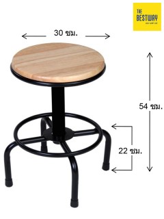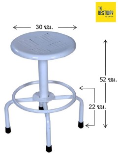ขนาด เส้นผ่าศูนย์กลาง 30 ซม. พื้นถึงที่นั่ง 50 ซม. พักเท้าสูง 22 ซม.